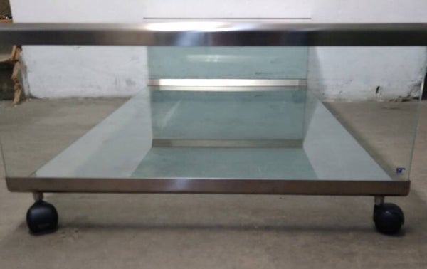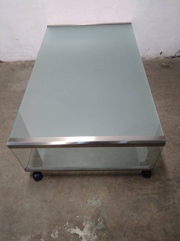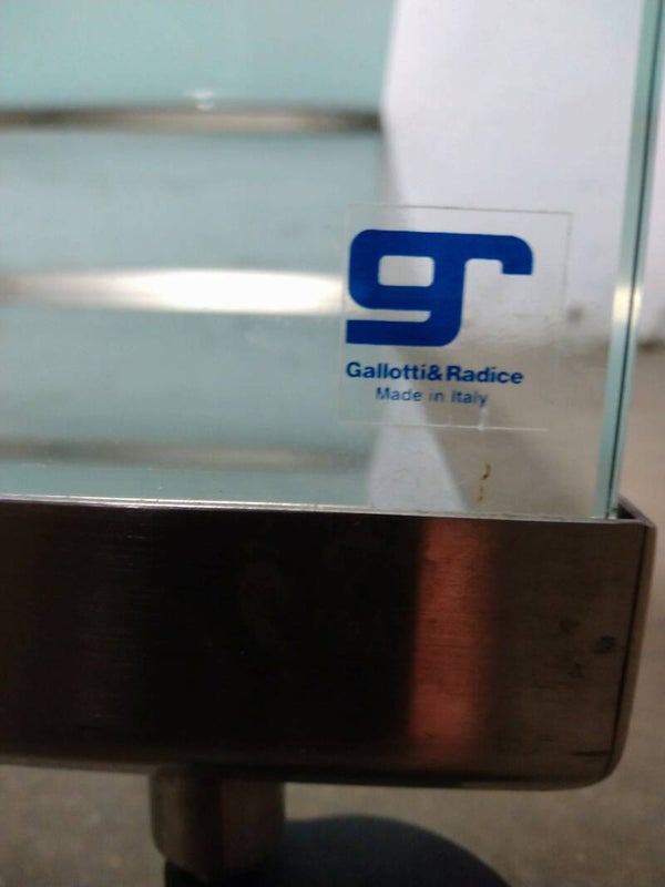 Designer Pirangelo Gallotti Manufacturer Gallotti & Radice Period 1980 Origin Italy Material chrome, glass Condition This table has a frosted glass top and stands on 4 wheels. The condition is excellent and has minimal signs of wear appropriate to age and use.